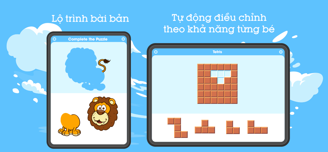 - Báo cáo kết quả hàng tuần theo từng nhóm kỹ năng: Ngôn ngữ, Tưởng tượng, Ghi nhớ, Âm nhạc, Logic, Toán học, Quan sát, Vận động tinh,...kèm theo các đề xuất giúp cải thiện kỹ năng