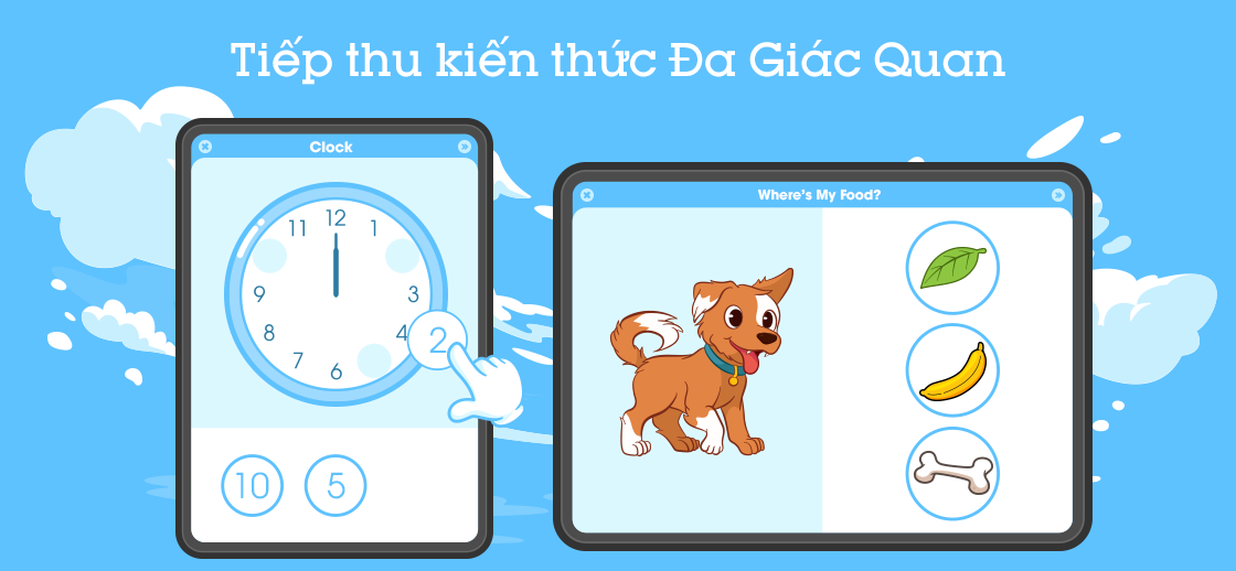 Học - Thực hành với hơn 1025 bài học theo chủ đề với nội dung thực tế, thú vị, sát với cuộc sống hàng ngày của trẻ như: Động vật, thức ăn, phương tiện giao thông, thời tiết, thời gian ... Kết hợp việc học đa giác quan Nghe - Nhìn - Tương tác cùng hình ảnh động, âm thanh tự nhiên, bài học linh động, phần thưởng hấp dẫn. Công nghệ AI tự động điều chỉnh bài học phù hợp theo độ tuổi và khả năng của con